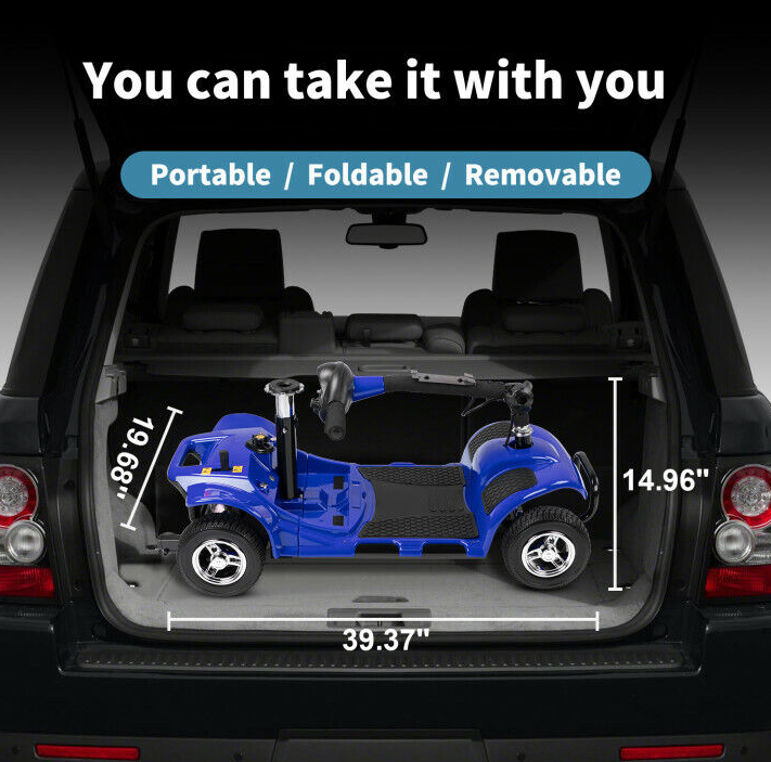 【 Easy to Transport 】 It is easy to disassemble the mobility scooter into four separate pieces without tools, you can put them in the trunk of standard size vehicles and making your travel much more convenient and comfortable!