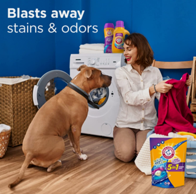 ARM & HAMMER™ Plus OxiClean™ with Odor Blasters 5-in-1 Power Paks offer 5 powerful cleaning benefits in 1: odor elimination, deep cleaning, whitening whites, brightening colors, with a powerful fresh scent booster. Odor Blasters is specially formulated to eliminate tough odors like body odor, sweat and musty towels by attacking them at their core, leaving clothes clean and smelling great with a long-lasting Fresh Burst scent. Get effective cleaning power with ARM & HAMMER™ Plus OxiClean™ with Odor Blasters 5-in-1 Power Paks. Our powerful formula is designed to work in cold and hot water as well as all machines including high efficiency (HE). Drop one in today! Tough times call for value you can trust. When you’re feeling the price pinch, Give It the Hammer.