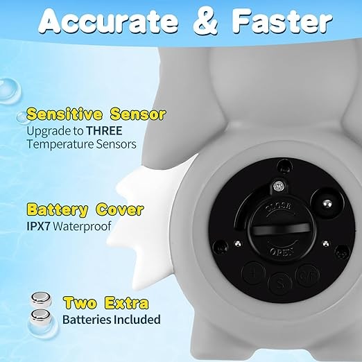 • 【Show Temperature in Seconds】Our baby bath thermometer is completely waterproof, so you don't have to worry about damaging it in the water. The baby bath thermometer floating toy not only provides accurate temperature readings but also doubles as a fun floating toy, adding joy to bath time. The thermometer instantly displays the temperature upon contact with water, updating every 5s, without the need for complicated instructions or settings,for your baby to enjoy bath fun.