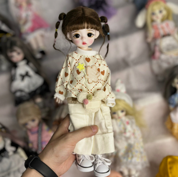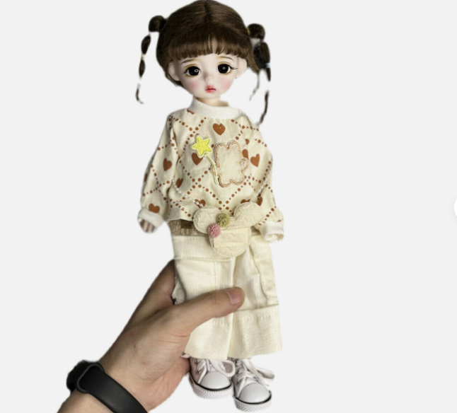 BJD Doll Girl Body with Clothes Suit Wigs Face Makeup Full Set Cute Doll Toy