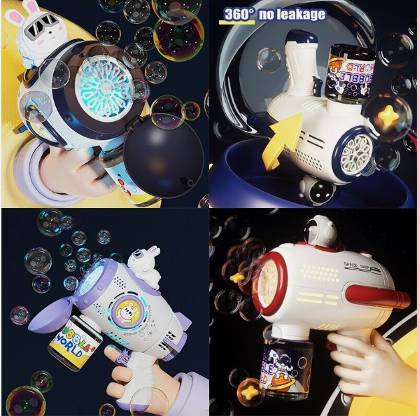 • Unique Astronaut Theme Design - The appearance of the bubble machine is designed with a unique astronaut theme, which is loved by kids. The bubble gun ergonomic handle is comfortable to hold and won't slip off easily. The bubble machine comes with 80ml of bubble liquid and can support about 1h of uninterrupted play. On first use, bubbles will appear after 8 seconds.
