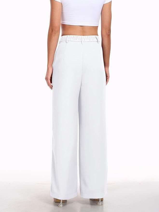 【Waist Design】These women's casual Wide-Leg Pants have a High-Waisted design. With unique front pleats and a soft elastic band at the back, they offer extreme comfort—a perfect blend of style and lounge vibes!