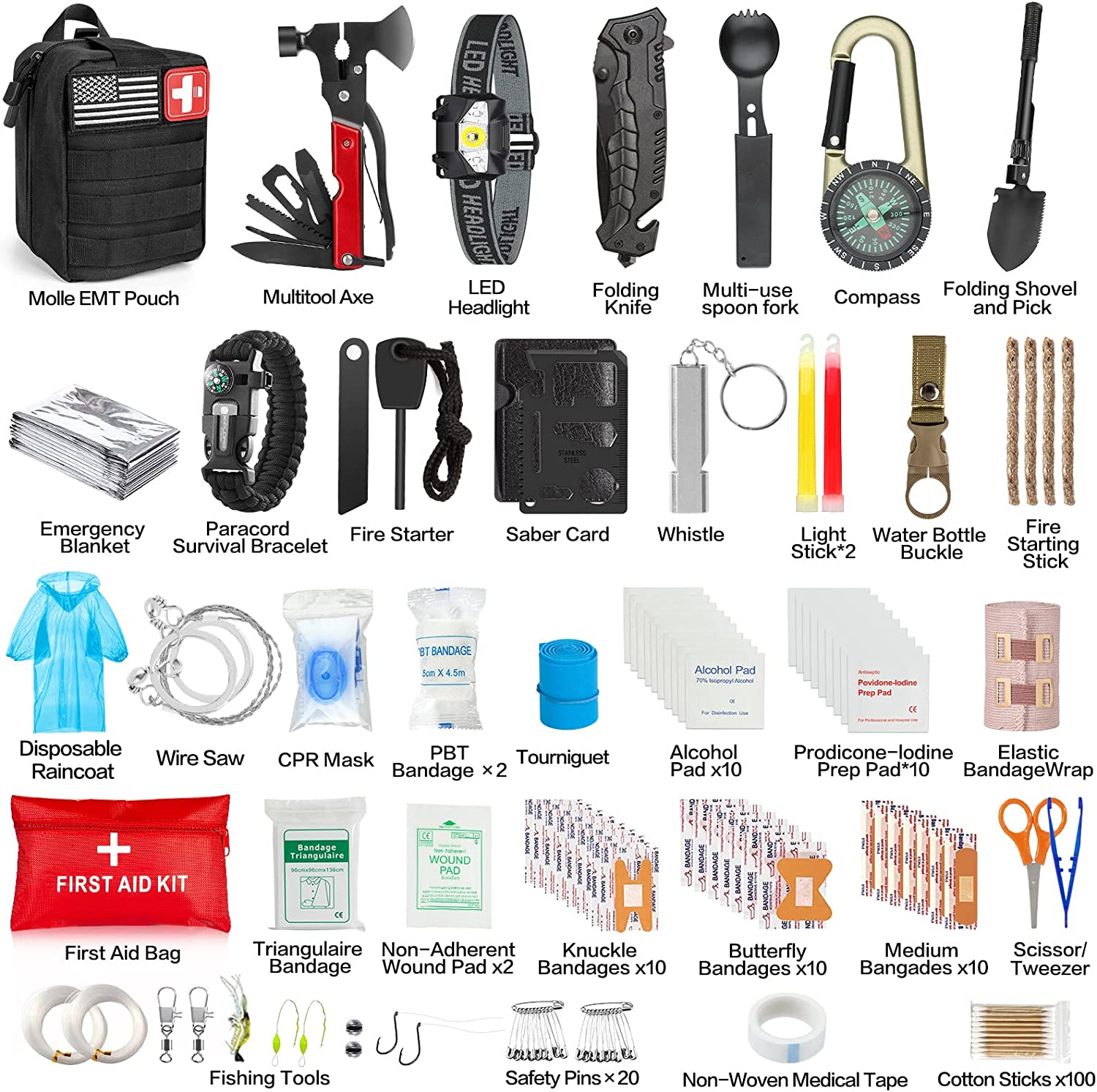 Emergency Survival Kit 176Pcs Gifts for Men Dad Husband Survival Gear Tool Kit S