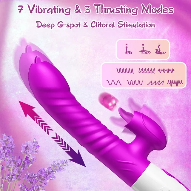 ESVOW Thrusting Rabbit Vibrator for Women, Stimulator Sex Toys with 10 Tongue Licking Vibration & 3 Telescopic Modes & Heating Function,5 IN 1 Waterproof Adult Toy for Couples Pleasure