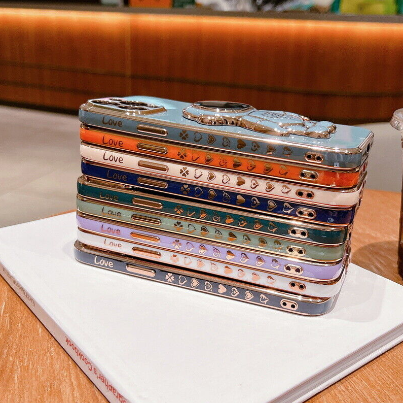 For iPhone 13 12 Pro Max 11 XR XS 7 8 Plus SE Plating Astronaut Stand Case Cover