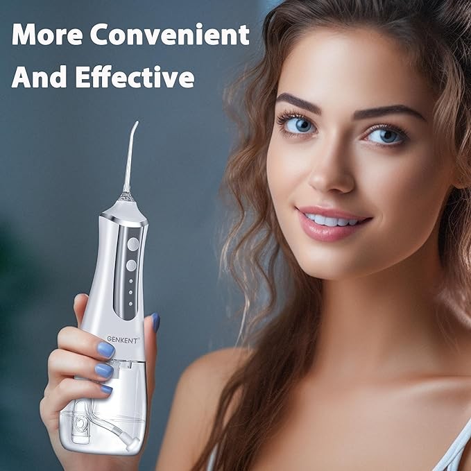 Make Your Use More Convenient: GENKENT water dental flosser is equipped with a 300ml large-capacity water tank. The cordless water flosser back adopts a non-slip design. our water flosser for teeth cleaning overall shape is very suitable for the palm. The water floss 3 indicator lights allow you to easily distinguish different modes. The GENKENT water flosser overall simple and practical design makes your use more convenient convenient.