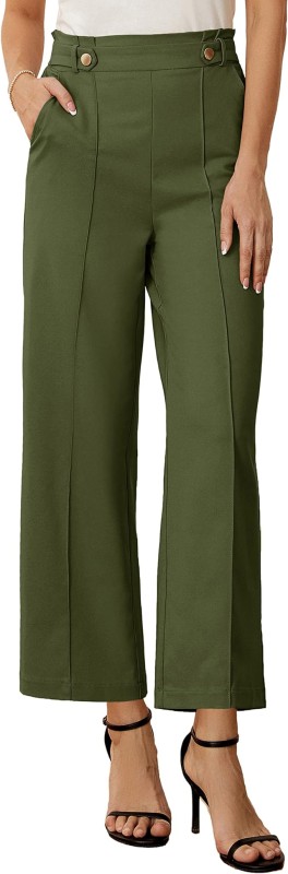 GRACE KARIN Women's Straight Leg Cropped Work Pants Elastic High Waist Wide Leg Business Casual Slacks with Pocket