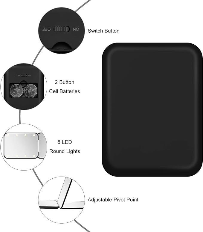 [Illuminate Exclusive Your Beauty] - Our travel mirror is equipped with eight super bright LED fluorescent lights, which will reach maximum brightness when you turn on the button placed on the back, allowing you to better show the most realistic look in dimly lit scenarios, and even in such environments, it can perfectly complement your beauty.