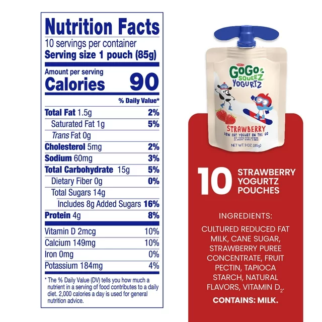 - Ten 3-ounce GoGo squeeZ yogurt pouches