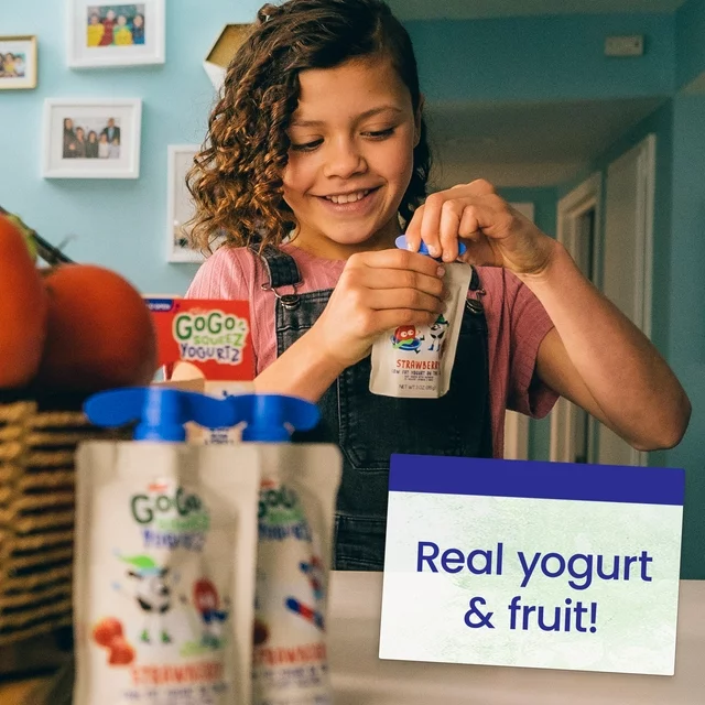 Variety Pack of Sweet and Creamy Yogurt Snack Pouches:GoGo squeeZ yogurtZ are made from real yogurt, strawberries and bananas for a smooth, creamy and tasty yogurt drinks kids will love—no spoon, no mess!