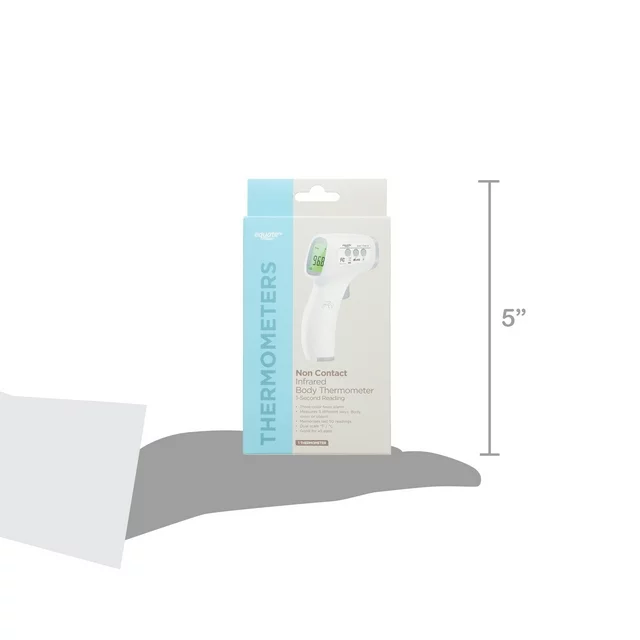 The Equate Non Contact Infrared 1-Second Digital Body Thermometer will give you a fast and accurate reading, making it great for checking for fevers in infants, children, and adults. Recommended for use by all ages, this infrared thermometer features a low battery indicator and simple controls. It has a power-saving LCD display with green / yellow with red three-color fever alarm and memorizes the last 50 readings. This infrared body thermometer measures temperature three different ways: Body, room, or object for food, liquid, and ambient temperature. The Equate Non Contact Infrared 1-Second Digital Body Thermometer makes taking anyone's temperature fast and easy in 1 second.