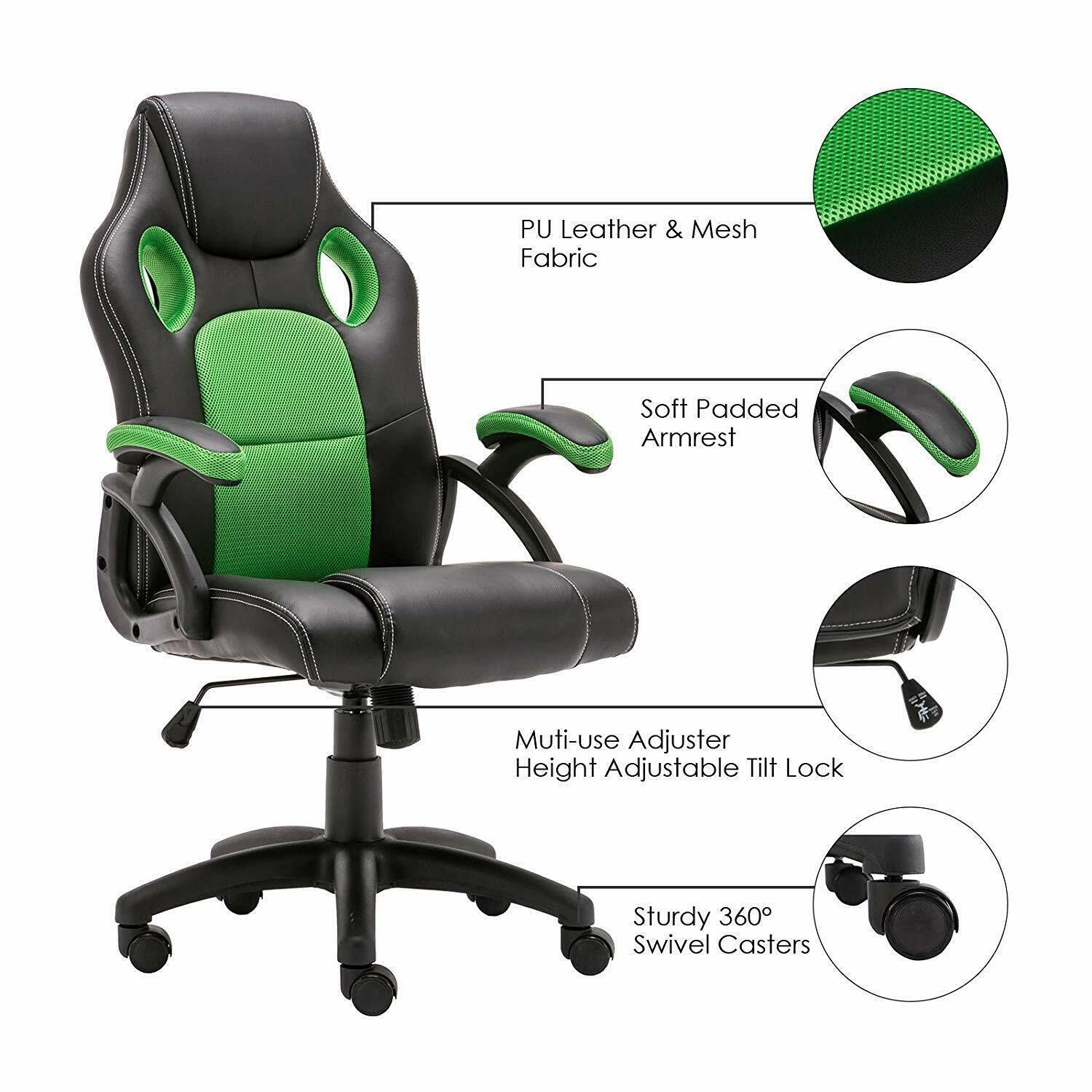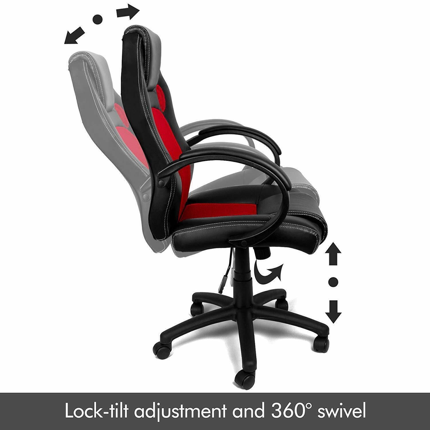 RACING GAMING OFFICE CHAIR EXECUTIVE LUMBAR SUPPORT SWIVEL PU LEATHER COMPUTER