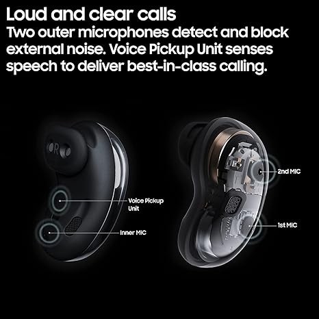 • Features including Active Noise Canceling are enabled through Bluetooth connection or the Galaxy Wearable app on Android, available through Google Play Store.