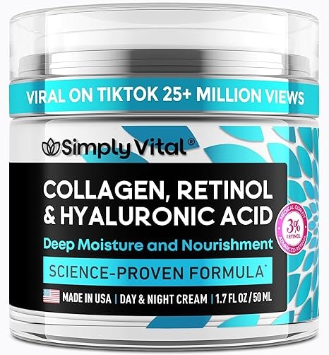 SimplyVital Face Moisturizer Collagen Cream - Anti Aging Neck and Décolleté - Made in USA Day & Night Face Cream - Moisturizing, Lifting & Recovery – 1.7oz