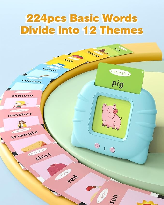 [ Toddler Montessori Learning Toys ] -This Montessori toy with 224 colorful illustrations and funny sounds which is perfect for toddler aged 2,3,4,5 years old. It contains 12 different themes, including animals, daily necessities, vehicles, foods, fruits, vegetables, costumes, nature, colors, persons, jobs, shapes. Toddlers can learn new words, build vocabulary while playing with this toy, explore different possibilities and enhance cognitive ability and exercise hearing.