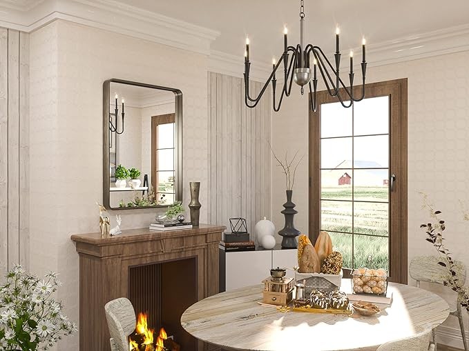 ✨【Vertical or Horizontal Installation】 The package dimension is 33"x24"x4". The metal frame vanity mirror can be hung vertically or horizontally. Besides, the mirror can be leaned to the wall as decoration. Please read the manual to select two correct holes before punching holes